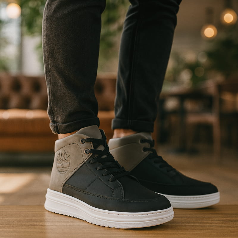 کفش ساقدار مردانه مشکی طوسی مدل R88