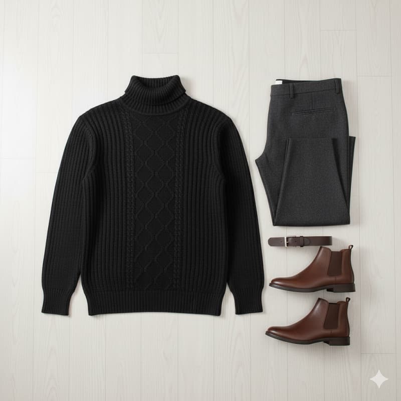 پلیوربافت مردانه مشکی یقه اسکی مدل Hakan